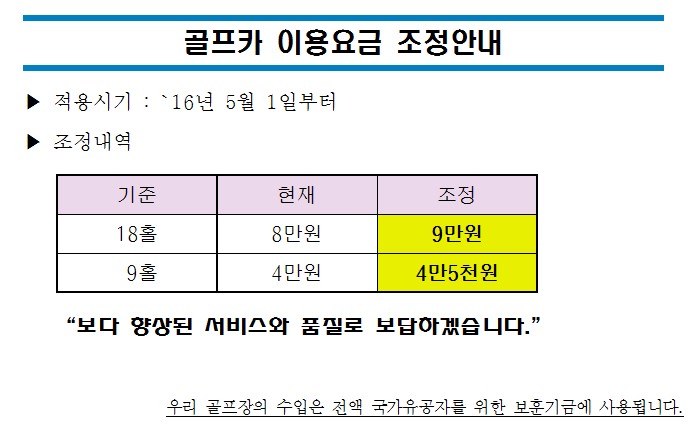 골프카 이용요금 조정안내