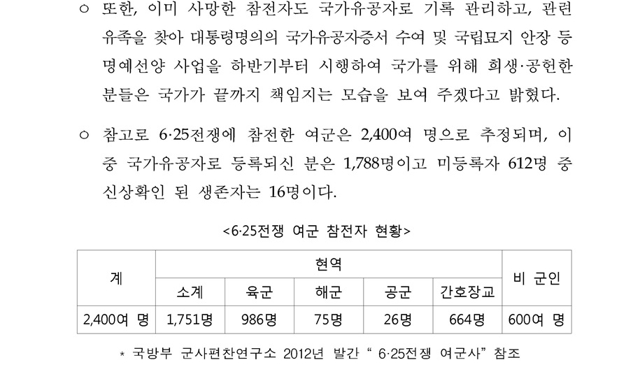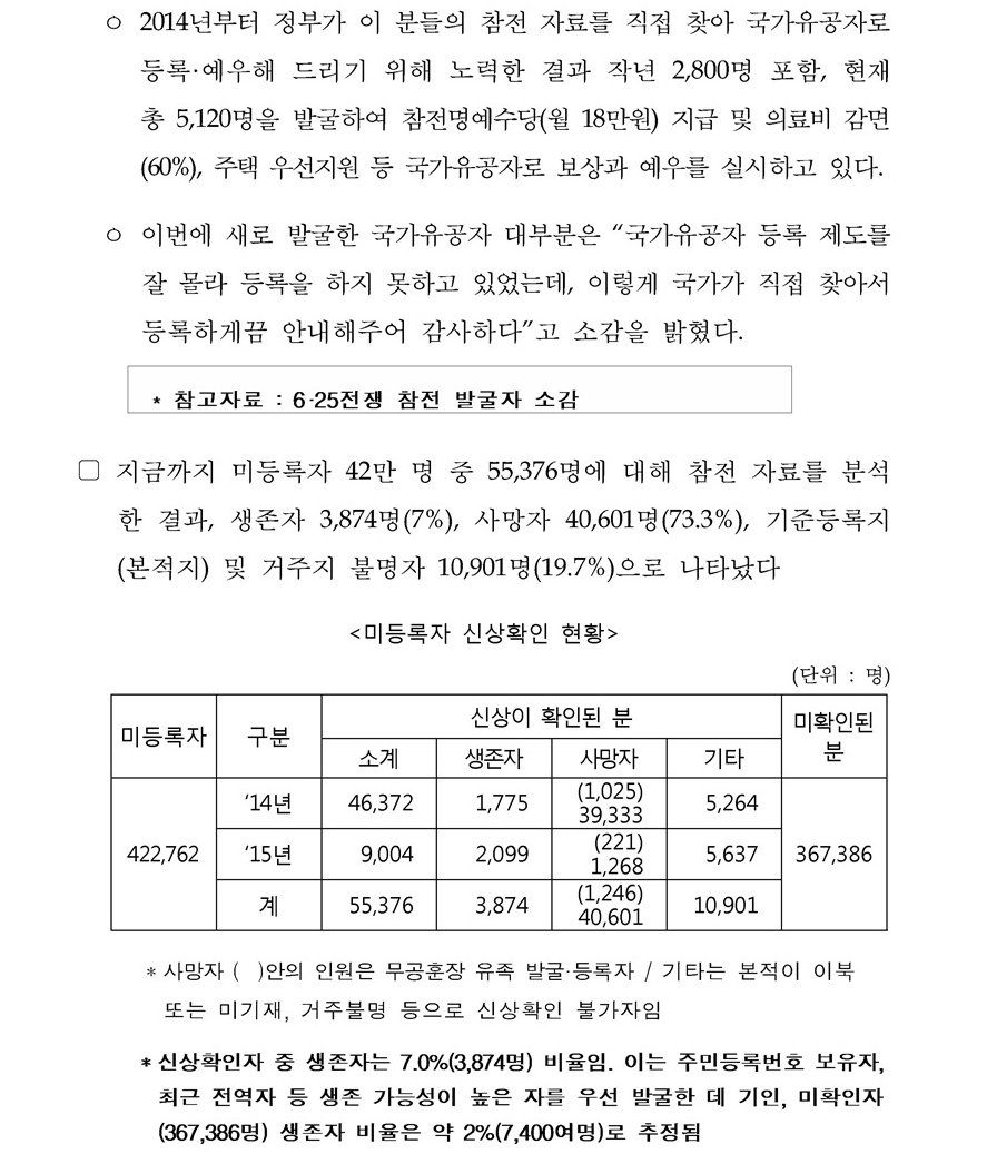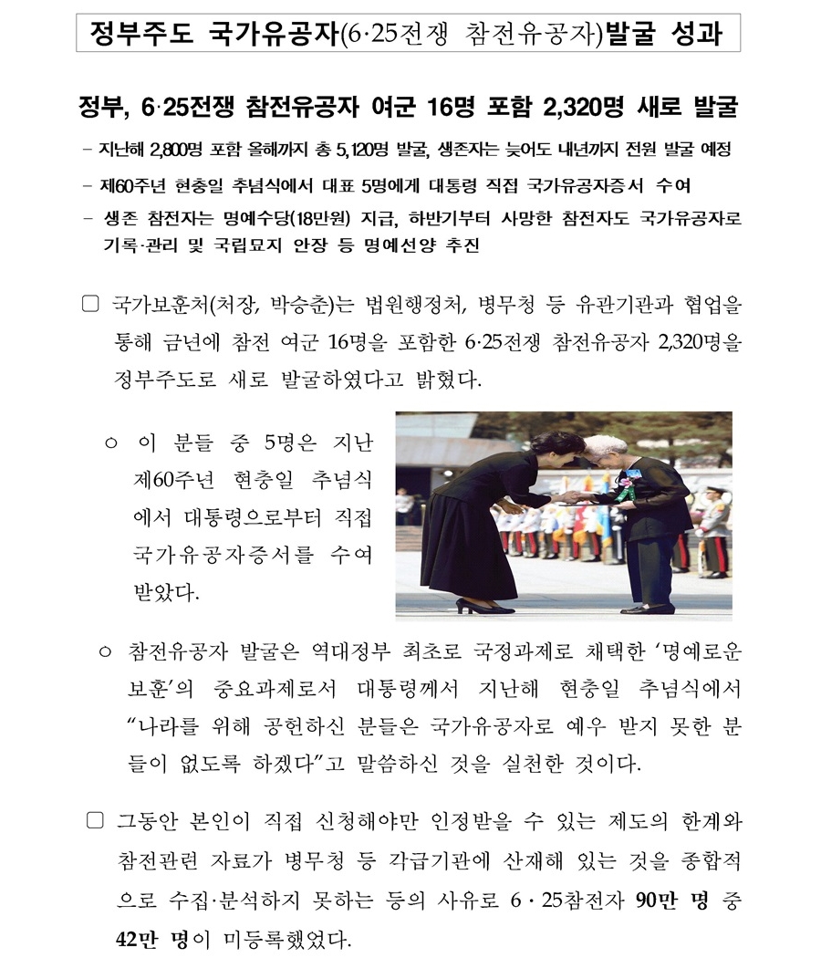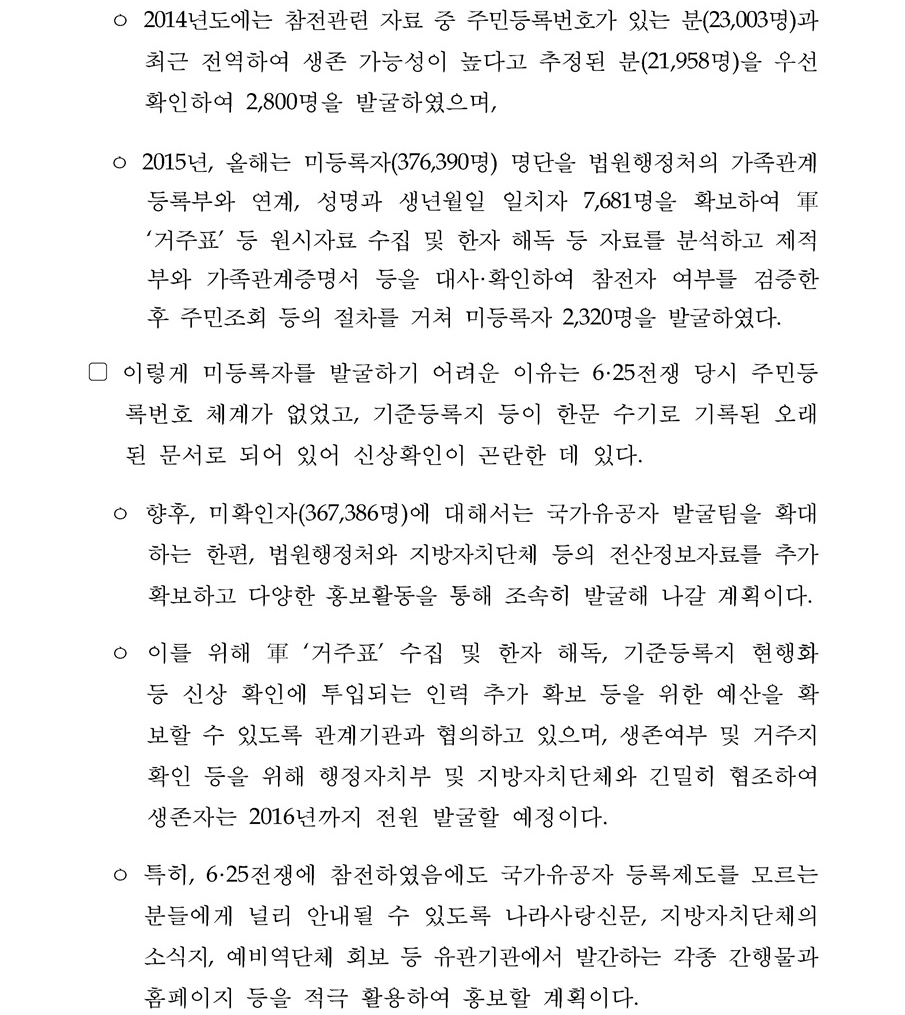 정부주도 국가유공자(6·25전쟁 참전유공자)발굴 성과