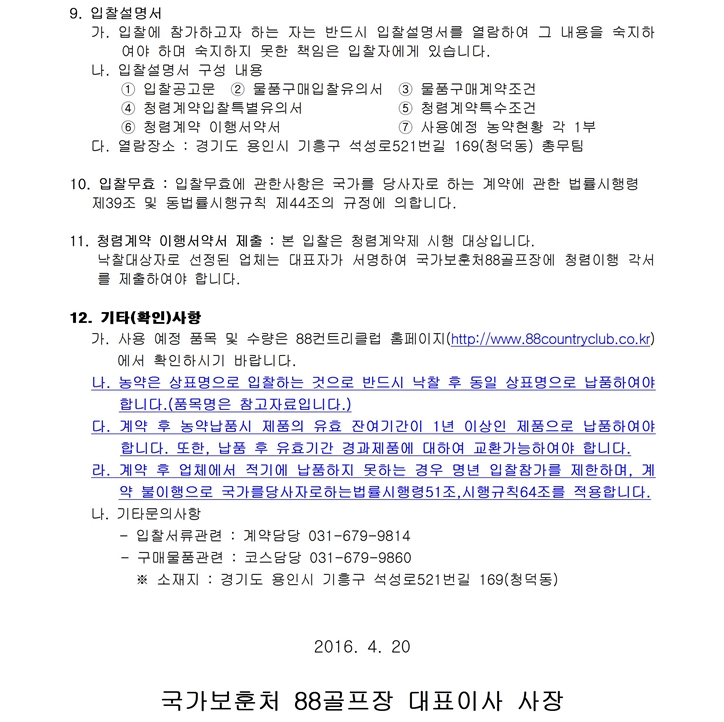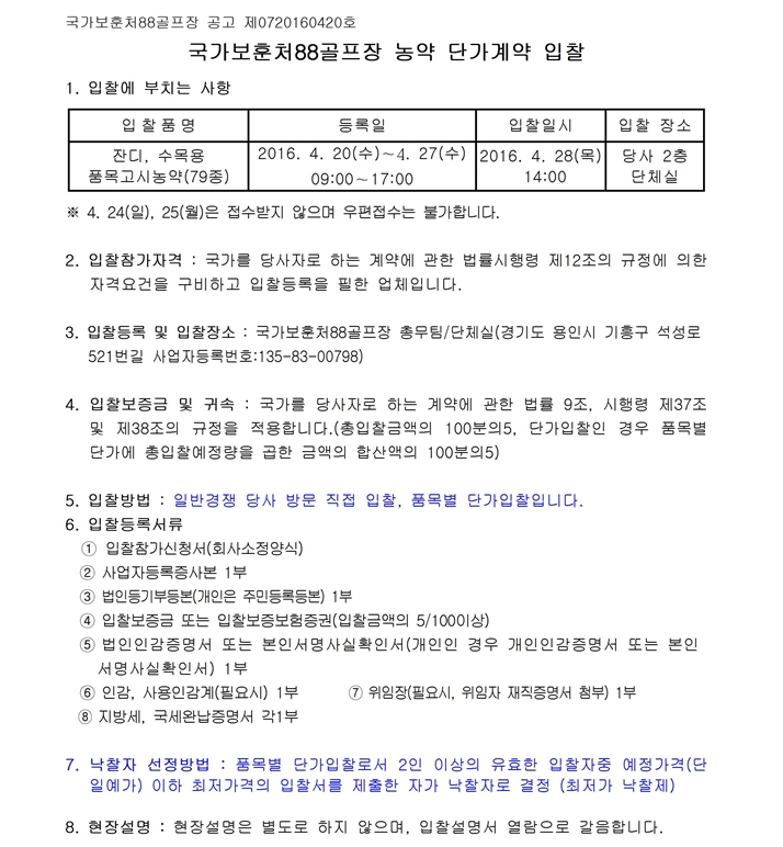 농약 단가계약 입찰공고