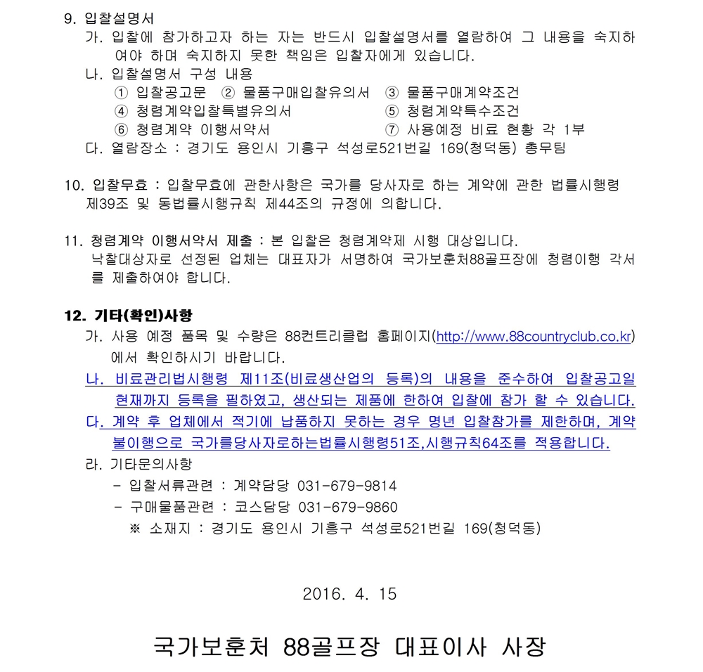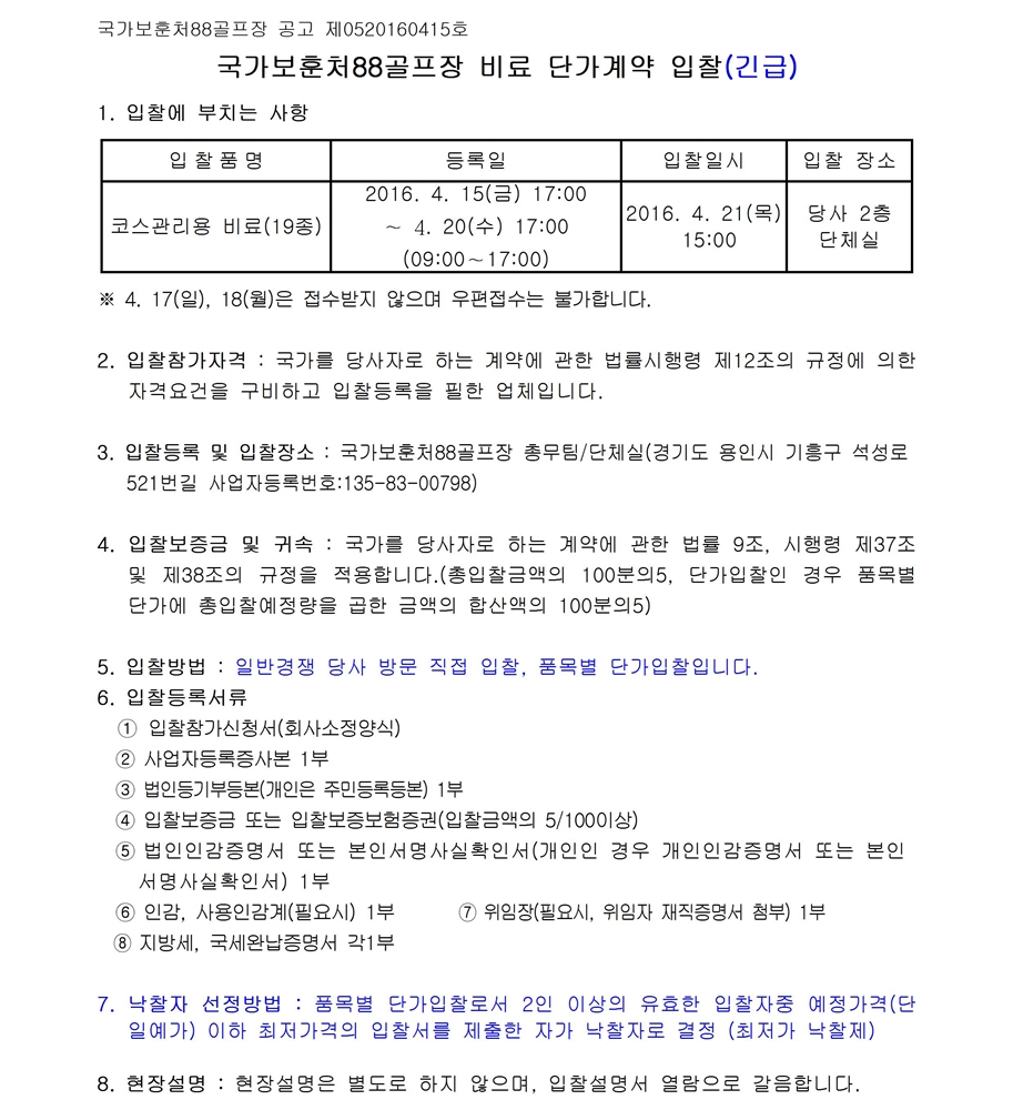 코스관리용 비료 단가계약 입찰
