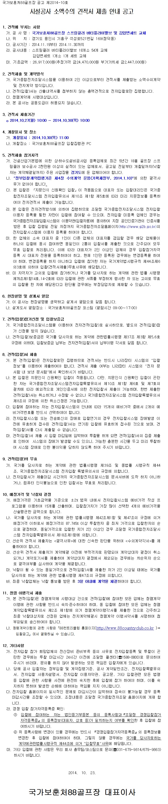 [입찰공고] 국가보훈처88골프장 스프링클러 버터플라이밸브 및 감압변세트 교체