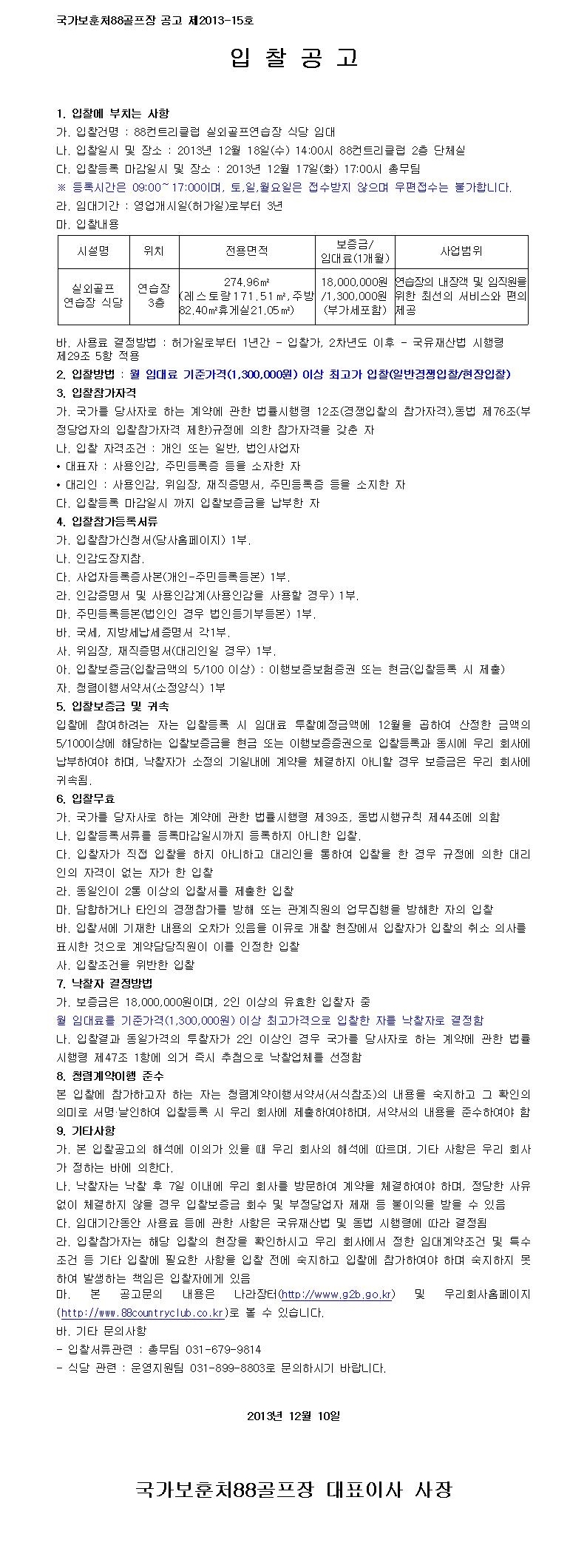 88컨트리클럽 실외골프연습장 식당 임대