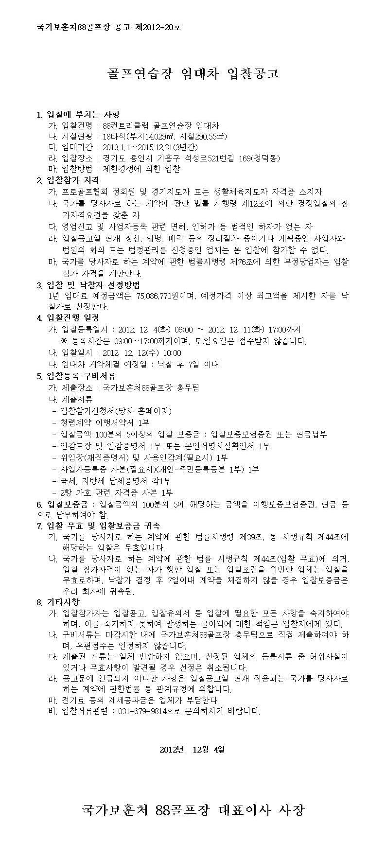 골프연습장 임대차 입찰공고
