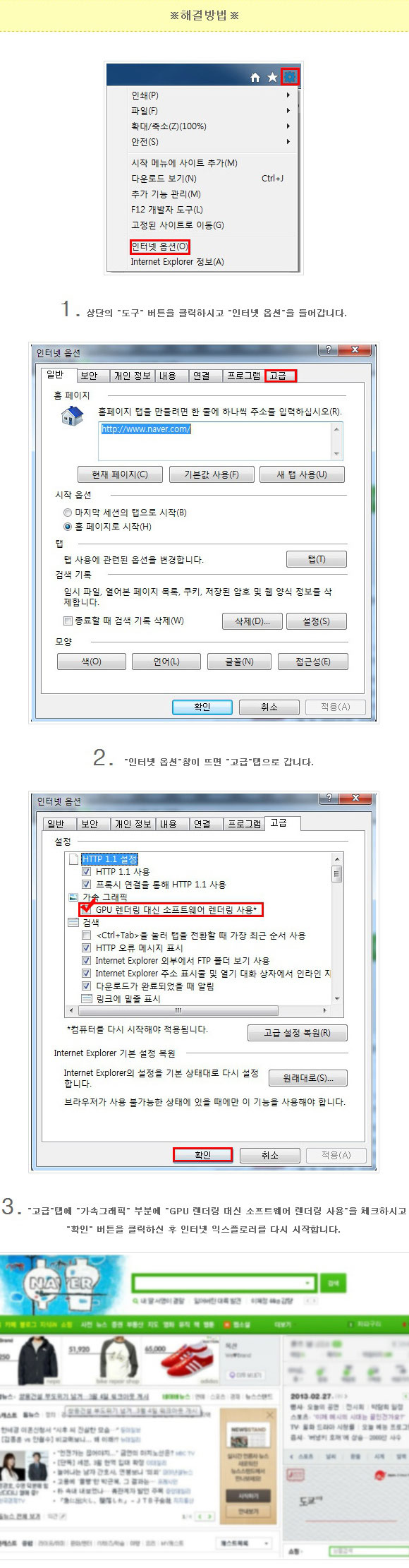 (윈도우8)익스플로러10 플래시가 정상작동을 안할시 대처방법