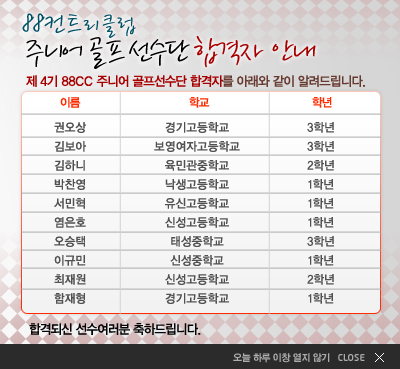 제4기 88CC 주니어골프선수단 합격자